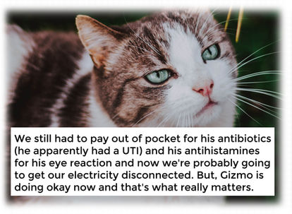 A sudden injury or allergic reaction is all that it would take to put them on the verge of losing their pet to an illness or having to rehome them due to their inability to support their pet's special needs.